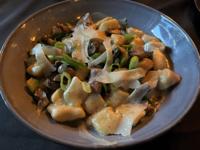 We usually take a while to make our choices, but we were abnormally efficient this night. We quickly agreed to try the Tempura Cauliflower ($14), and when we realized that we were both trying to decide between the Gnocchi ($19) and the Shrimp Risotto ($24), we ordered both, with a couple of extra plates for sharing.