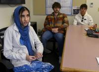 Sidrah Khan, a Concord High junior, talks about her college credit classes with fellow Running Start students Will Richards and Ryder Fisk, both seniors.