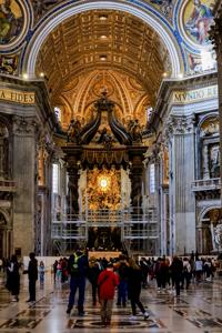 Scaffolding surrounds the baroque sculpted bronze canopy by Gian Lorenzo Bernini over the high altar of St. Peter’s Basilica in preparation for its restoration, at the Vatican on Wednesday.